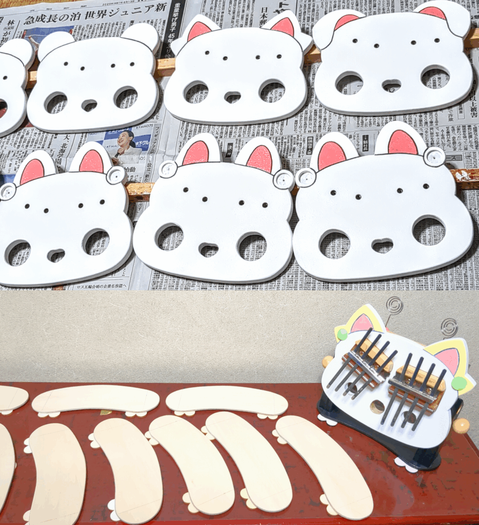 鼻パーツって、以前は分厚いヒノキを削って作っててその立体感と木目が良かったんですが、弾く時にちょっと指に当たったりして邪魔な面もあったんです。何より、削る手間、綺麗にニスを塗る手間が結構な負担でした。