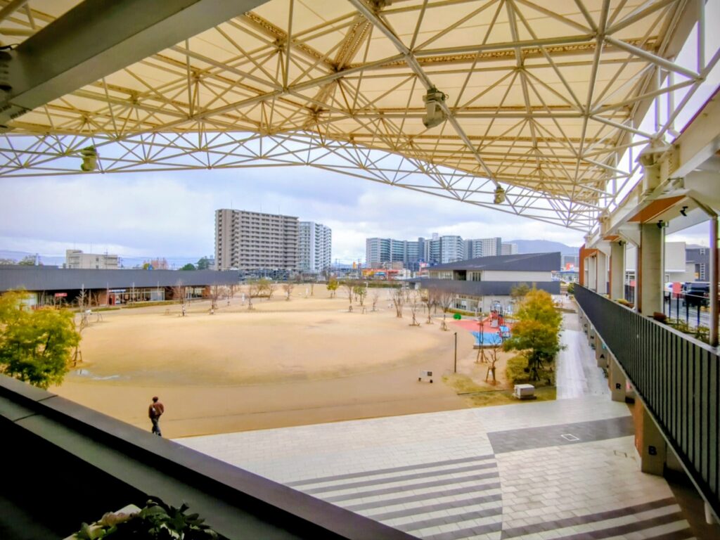 僕はこの施設の名前も初めて聞いたぐらいだったので(;^ω^)、一応平日昼間に下見に行きました。1階の駐車場で荷下ろし・運搬して、3階の駐車場に車を泊めて、1階の広場に戻って設営、という流れを脳内シミュレートしてきました。