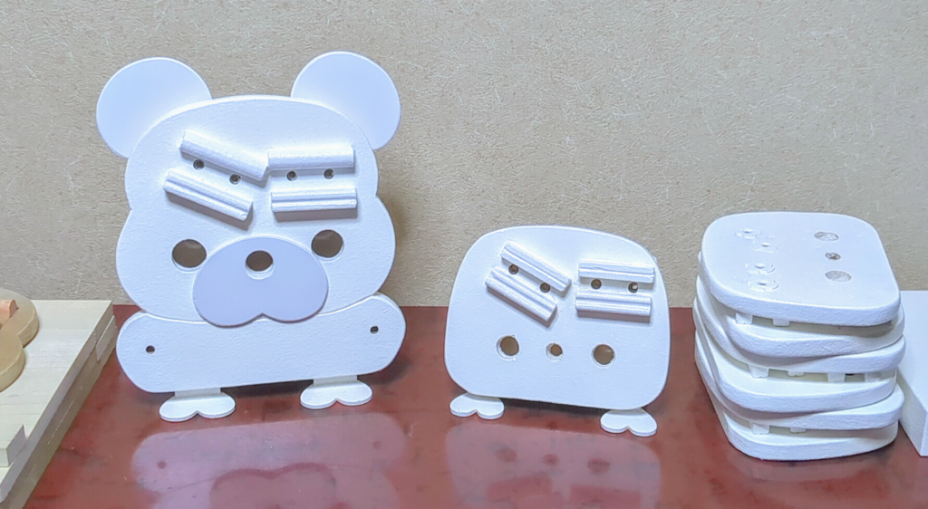 イロハニコットも良くはなってると思います。ただ、新しい形を立体化すると、いろんな部分でバランス調整したり、思ってたのと何か違って作り直したりで、「三歩進んで二歩下がる」みたいな感じでした。でもやっと型板が出来たので、あとは作ればいいだけかも。。。